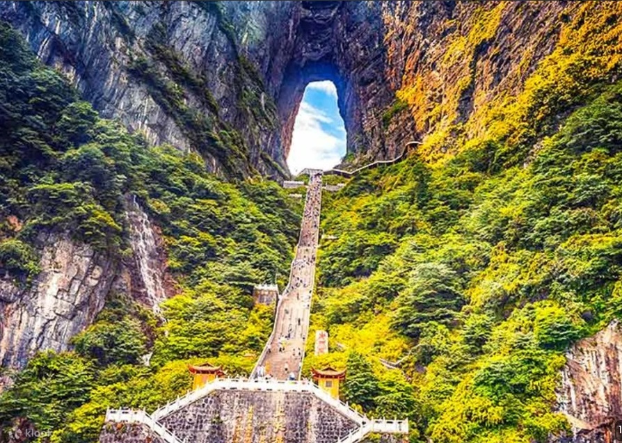 Для приятных прогулок идеально подходит долина Золотого кнута с тропами вдоль реки, а окружающие скалы нависают над маршрутом, создавая ощущение гармонии с природой. Отдельного внимания заслуживает гора Тяньмэнь, священное место с богатой историей, где расположены знаменитые Небесные врата — природная каменная арка, считающаяся символом связи между землёй и небом.