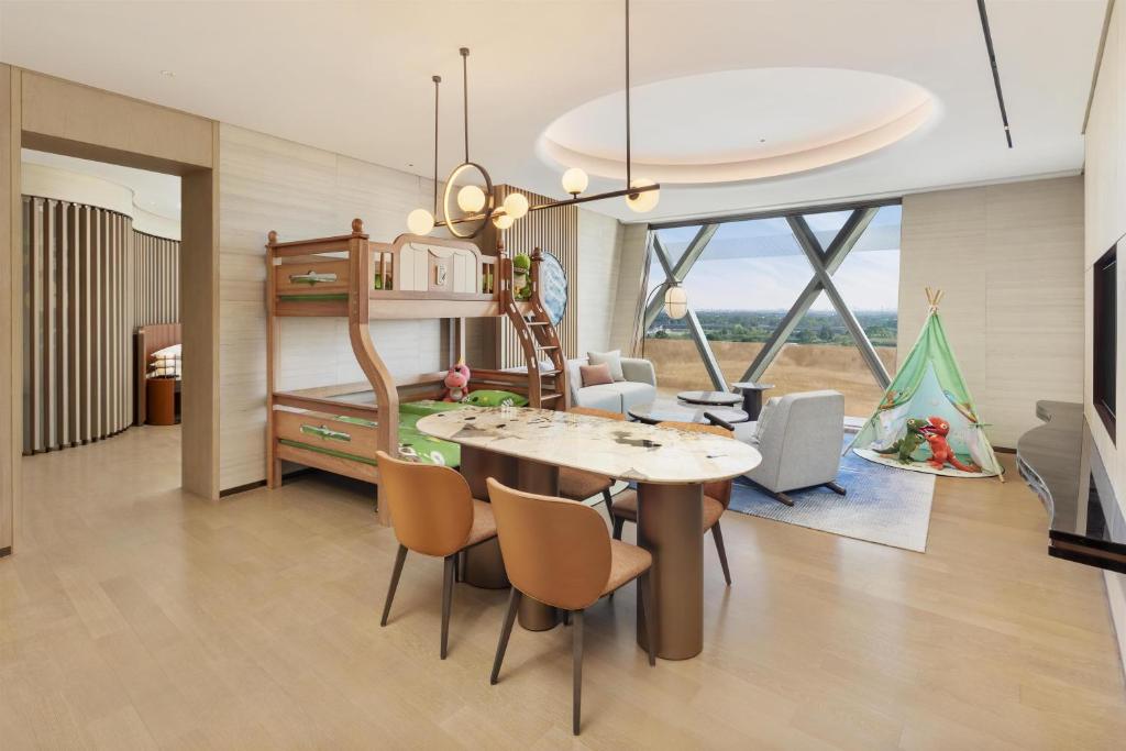 Номера и услуги Hilton Huzhou Nanxun — современный отель с выразительной архитектурой (здание в форме кольца над водой), предлагающий просторные номера и люксы с панорамными окнами и видами на озеро или город. Интерьеры выполнены в современном стиле с элементами восточной эстетики: нейтральная цветовая палитра, качественные текстуры, продуманное зонирование с рабочей зоной и зоной отдыха. Все номера оснащены кондиционером, телевизором, мини-баром, рабочим столом и ванной комнатой с ванной и душем.