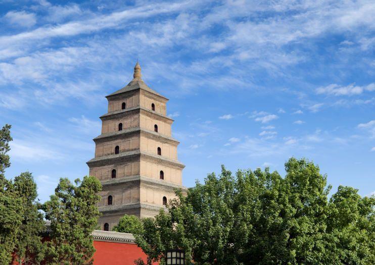 Большая пагода диких гусей высотой 64 метра была построена в VII веке при династии Тан и служила хранилищем буддийских сутр, привезённых из Индии. Объект включён в список Всемирного наследия ЮНЕСКО.