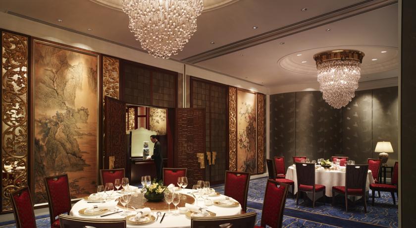 В Island Shangri-La есть несколько престижных ресторанов, предлагающих разнообразные кухни: Island Gourmet с закусками и кондитерскими изделиями, cafe TOO с десятью видами кухонь мира, Lobster Bar and Grill, японский ресторан Nadaman, а также кантонский Summer Palace и французский Petrus со звездами Мишлен.