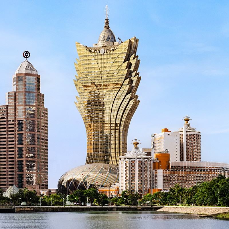 47-этажный отель высотой 258 метров невозможно не заметить, так как он покрыт стеклом с 24-каратным золотым покрытием и возвышается над всем Макао. В его основания расположено куполообразное казино, напоминающее яйцо Фаберже.