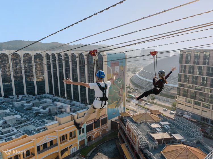 ZIPCITY – это третий по длине городской зиплайн в мире с захватывающими аудиовизуальными эффектами, которые усиливают острые ощущения от полета над районом Котай в Макао. С пятью зиплайнами, расположенными рядом друг с другом на высоте 60 м, он позволяет пятерым гонщикам вместе отправиться в 388-метровый полет со скоростью до 55 км/час. Можно выбрать дневное или ночное время, и если днем вы сможете полюбоваться панорамным видом на Макао и Котай, то ночью вас ждет захватывающее аудиовизуальное шоу.
