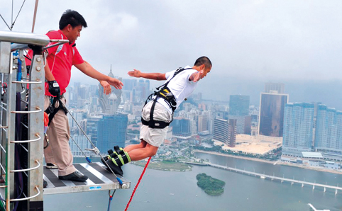 Боитесь высоты и хотите избавиться от этого? Тогда это развлечение в Макао – именно для вас. Вы можете совершенно безопасно пройтись по самому краю платформы, находящейся на высоте 233 метра! И даже закрыть глаза, если вдруг станет совсем страшно - упасть в пропасть невозможно благодаря системе супернадёжных тросов и дополнительной страховке.