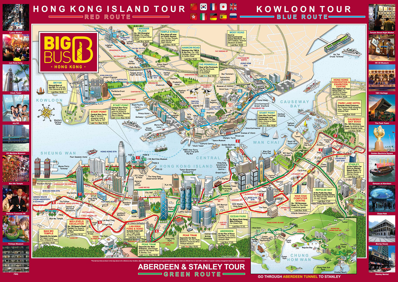 Стоимость экскурсии в Гонконге на автобусе Big Bus включает: