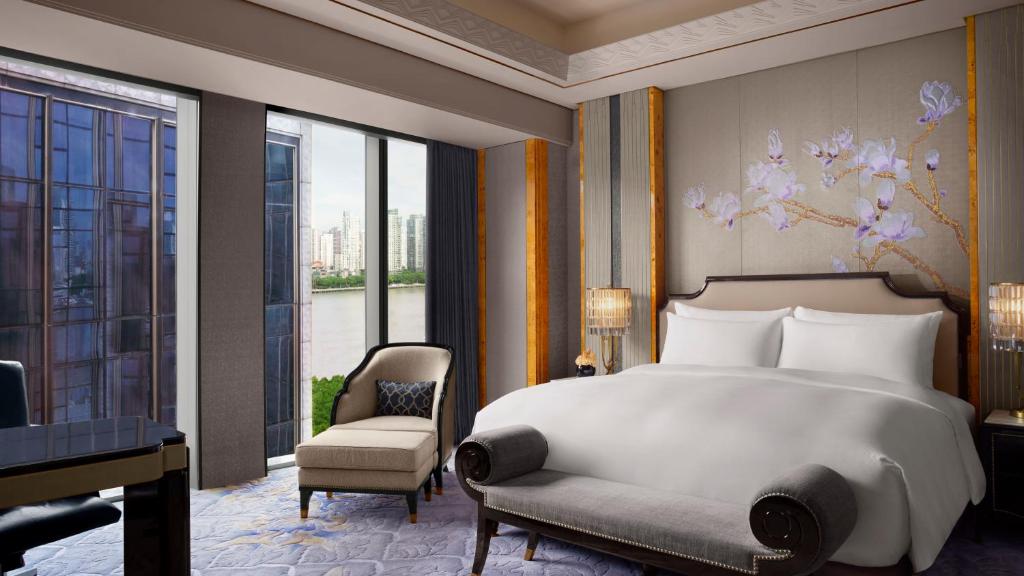 Номера и услуги St. Regis on the BundShanghai — премиальный отель на набережной Шанхая, который сочетает высокий уровень сервиса с удачным расположением. Номера отличаются роскошью в деталях, сочетая изысканный дизайн Ар-деко и традиционный китайский декор, и оснащены первоклассными удобствами: высокоскоростным Wi-Fi, док-станциями для iPod, большими телевизорами, фенами Dyson, а также мини-баром и кофемашиной, с круглосуточным обслуживанием.
