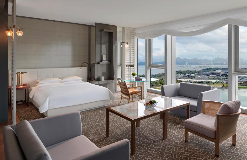 Номера и услуги Отель Andaz Shenzhen Bay (Андаз Шэньчжэнь Бэй) предлагает стильные номера и люксы с видом на залив и парк Talent. Интерьеры выполнены в современном стиле с тонкой эстетикой, мягкими тонами и дизайнерской мебелью. В номерах — просторные ванные комнаты с мраморной отделкой, большой ванной, душевой кабиной, телевизором с зеркальным экраном и удобные гардеробные зоны. Мини-бар наполнен напитками и закусками, которые пополняются ежедневно. В отеле 220 номеров и люксов.